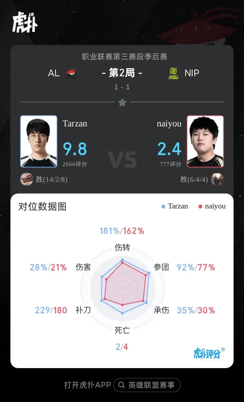 虎扑09月12日讯 Game2:蓝色方AL,红色方NIP